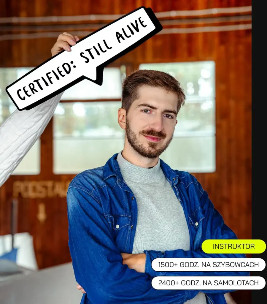 W naszym kursie odpowiada za to, co można dotknąć, wcisnąć i poprawić — czyli za praktyczne aspekty latania, budowę szybowców i wszystko, co pozwala wycisnąć z maszyny ostatni promil osiągów. Tomek nie opowiada, on przekazuje konkret. Bez zbędnych ozdobników, za to z wiedzą, która działa w powietrzu.